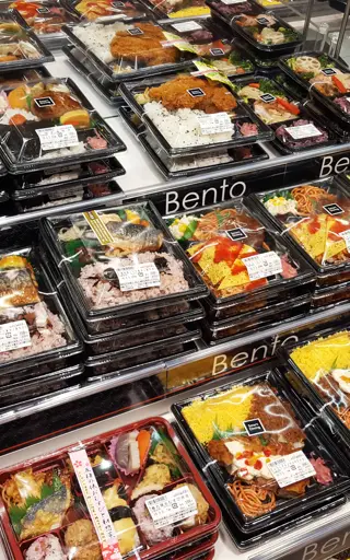 Man kann ja von Fertig–Essen halten was man will. Aber die Japaner haben die Tiefükühlkost perfektioniert und kombiniert mit ihrer Tradition der Lunchboxen. Im Gegensatz zu vielen Fertiggerichten wird hier viel Wert auf die Präsentation gelegt und viele der Zutaten sind tatsächlich frisch. Diese Boxen gibt es in allen möglichen verschiedenen Variationen und können an so ziemlich jeder Ecke gekauft werden.