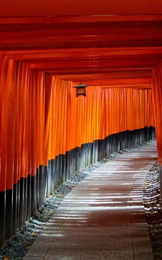 Dieser Schrein, oder besser gesagt der dazugehörige Weg mit seinen hunderten Torbögen, ist eines der beliebtesten Fotomotive von ganz Japan und eine wahrlich einzigartige Erfahrung. Die sogenannten Torii sind die realen und symbolischen Eingangstore zu Shintō-Schreinen. Und diese hier sind besonders eindrücklich, da sich auf dem gewundenen Weg tausende solcher Toriis in scharlachroter Farbe säumen, was die Durchquerung spektakulär gestaltet.