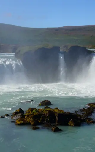 Godafoss wird oft als Wasserfall der Götter bezeichnet. Er ist einer von Islands wahren Schätzen und einer der größten Wasserfälle der Insel. Er fließt über 30 Meter breite, hufeisenförmige Klippen und wird in der Mitte durch Felsen geteilt. Ein Teil ist etwa 9 Meter und der zweite 17 Meter hoch. Ein magischer Ort.