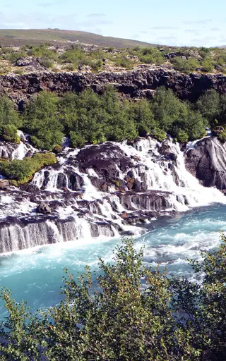Was bedeutet Hraunfossar? Hraun steht für die Lava und fossar bedeutet Wasserfälle, also bedeutet der Name Lavawasserfälle. Sie entspringen unter dem Lavafeld von Hallmundarhraun, der Name ist somit Programm.