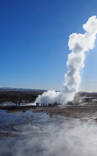 Mitten im goldenen Dreieck findet sich das Springquellengebiet der Geysire, dem Wahrzeichen Islands. In regelmässigen Abständen schiesst das Wasser aus dem Topf in die Höhe. Eine Herausforderung im richtigen Moment den Auslöser zu drücken.