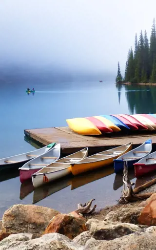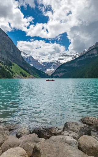 Inmitten im Banff Nationalpark liegt Lake Louise, der türkisblaue Gletschersee eingebettet zwischen Bergen. Der See ist sehr kalt und nicht zum Schwimmen geeignet, jedoch kannst du ihn mit Ruderbooten erkunden. Die Umgebung bietet dir ausgezeichnete Wandermöglichkeiten, wie zum Beispiel beim Moraine Lake.
