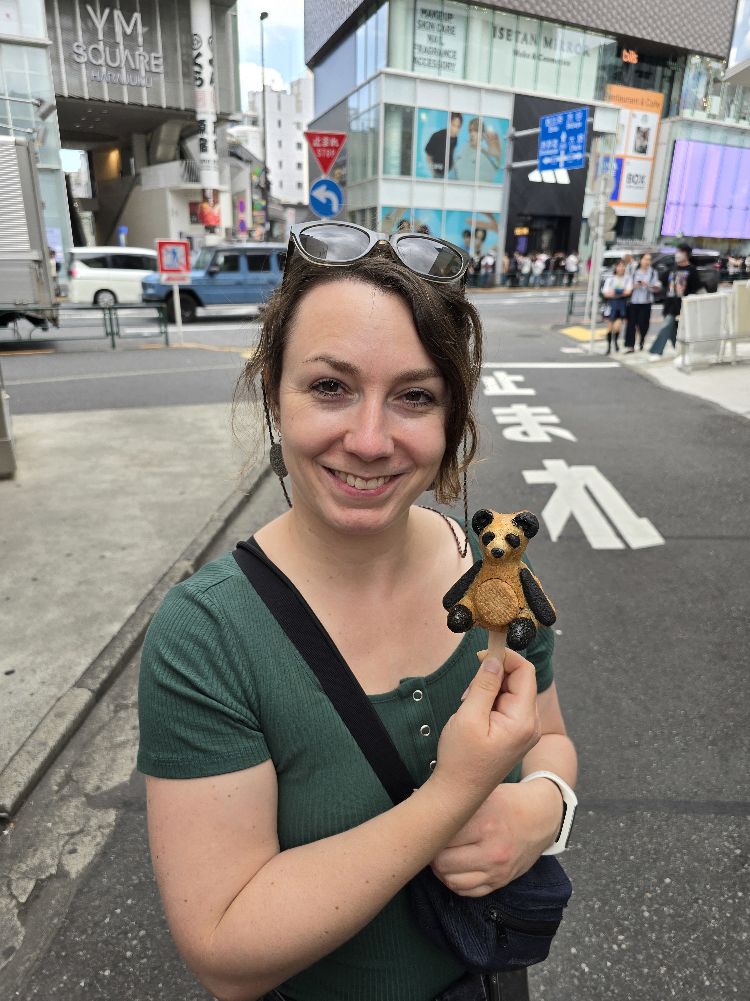 Die allgemein leichte japanische Küche kann man problemlos mit überzuckerten, eher schweren Süssigkeiten «aushebeln». Diese gibt es in allen möglichen Farben, mit den skurrilsten Zutaten und den wohl kreativsten Motiven überhaupt. Einer meiner Favoriten ist ganz klar dieser Panda-Pancake, den wir an einem Strassenstand beim nachmittäglichen Spaziergang durch Tokios Shibuya-Viertel entdecken und einfach nicht widerstehen können.