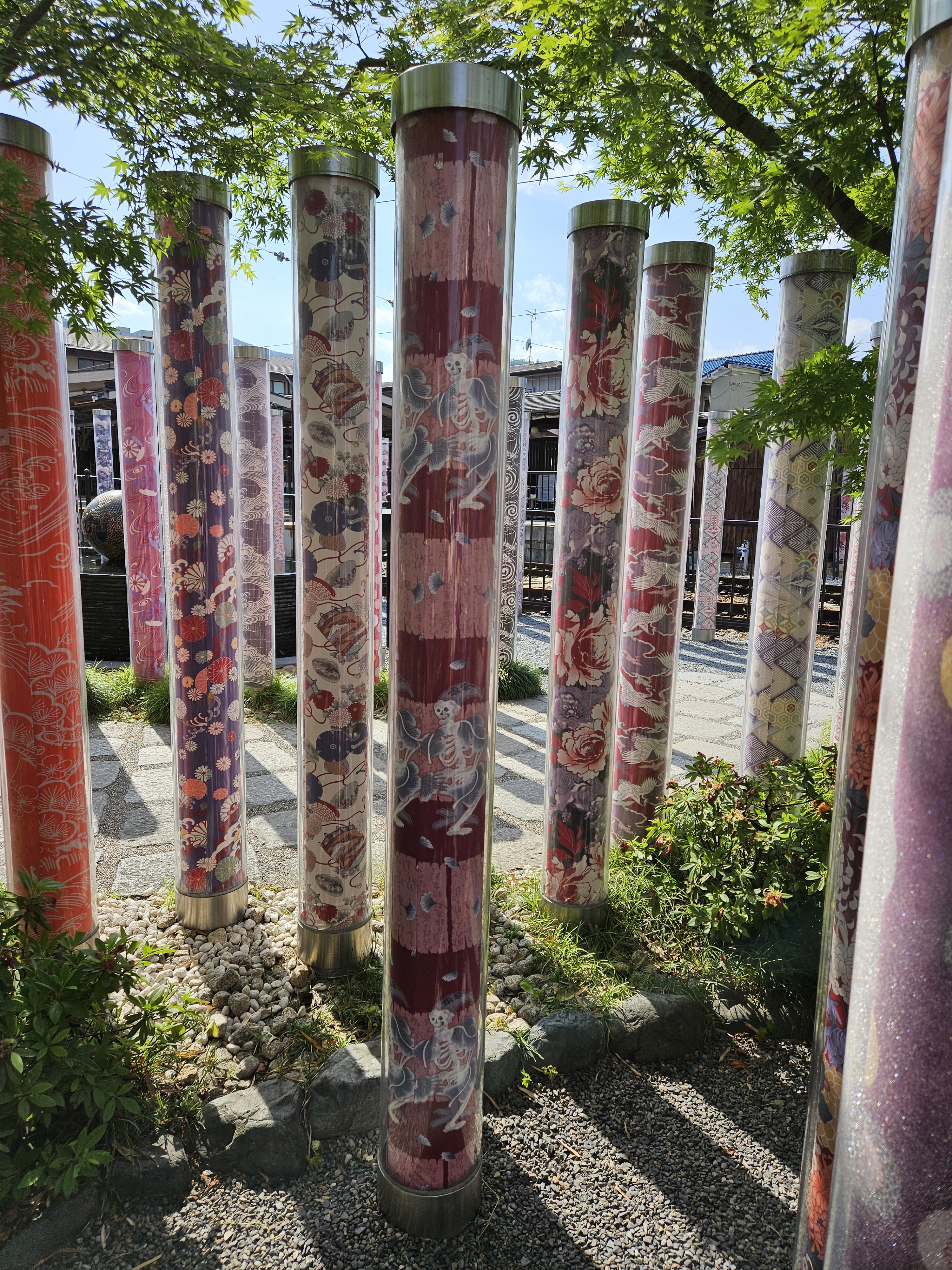 Der Kimono Forest am Arashiyama-Bahnhof ist gesäumt von Säulen, geschmückt mit dutzenden von unterschiedlichen Kimono-Stoffen in allen Farben und Mustern. Beim Posieren fürs perfekte Foto im «echten» Kimono-Gewand erwischt man hier nicht bloss Einheimische, sondern auch Tourist*innen.