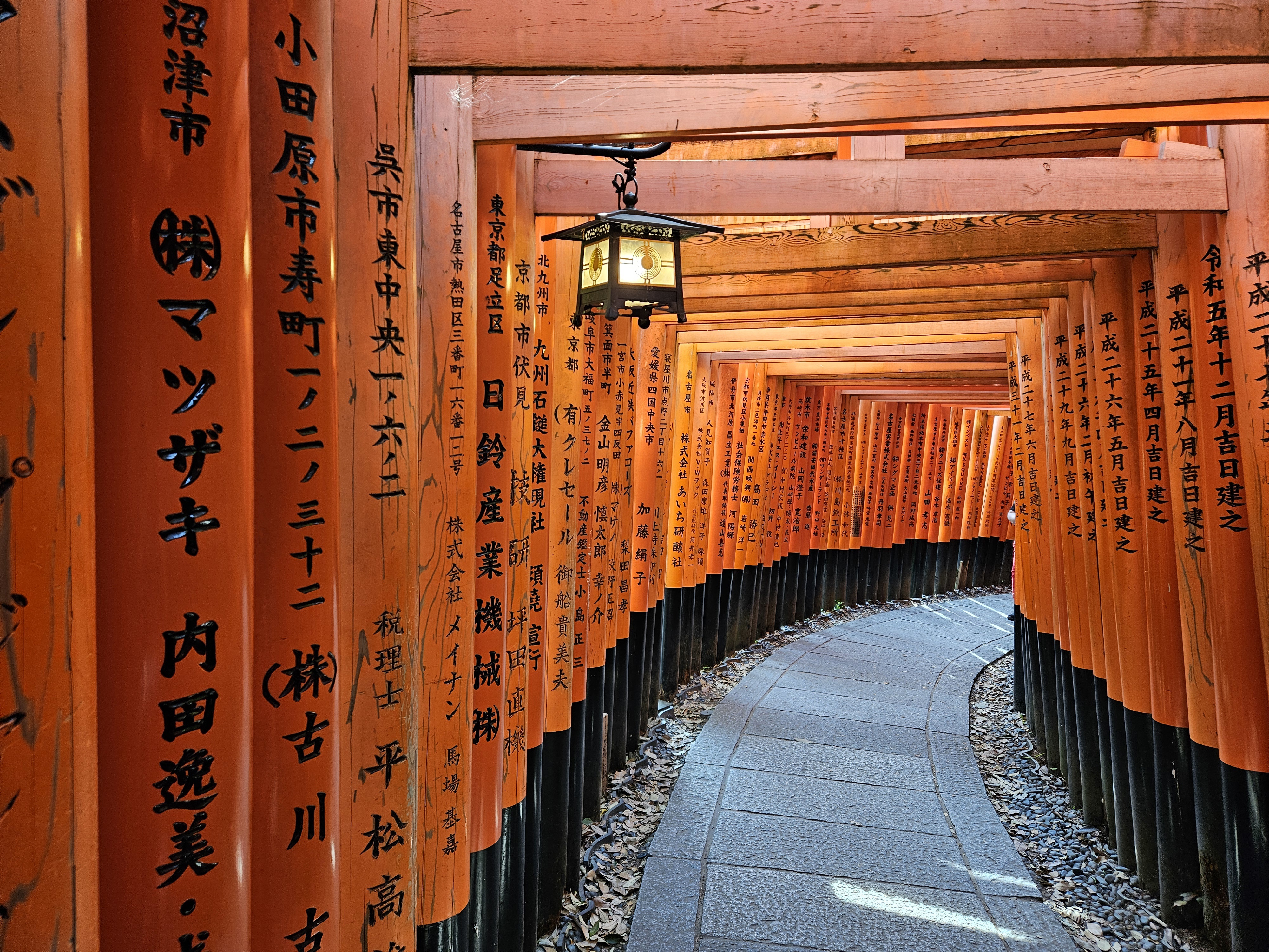Dieser Schrein, oder besser gesagt der dazugehörige Weg mit seinen hunderten Torbögen, ist eines der beliebtesten Fotomotive von ganz Japan und eine wahrlich einzigartige Erfahrung. Die sogenannten Torii sind die realen und symbolischen Eingangstore zu Shintō-Schreinen. Und diese hier sind besonders eindrücklich, da sich auf dem gewundenen Weg tausende solcher Toriis in scharlachroter Farbe säumen, was die Durchquerung spektakulär gestaltet.