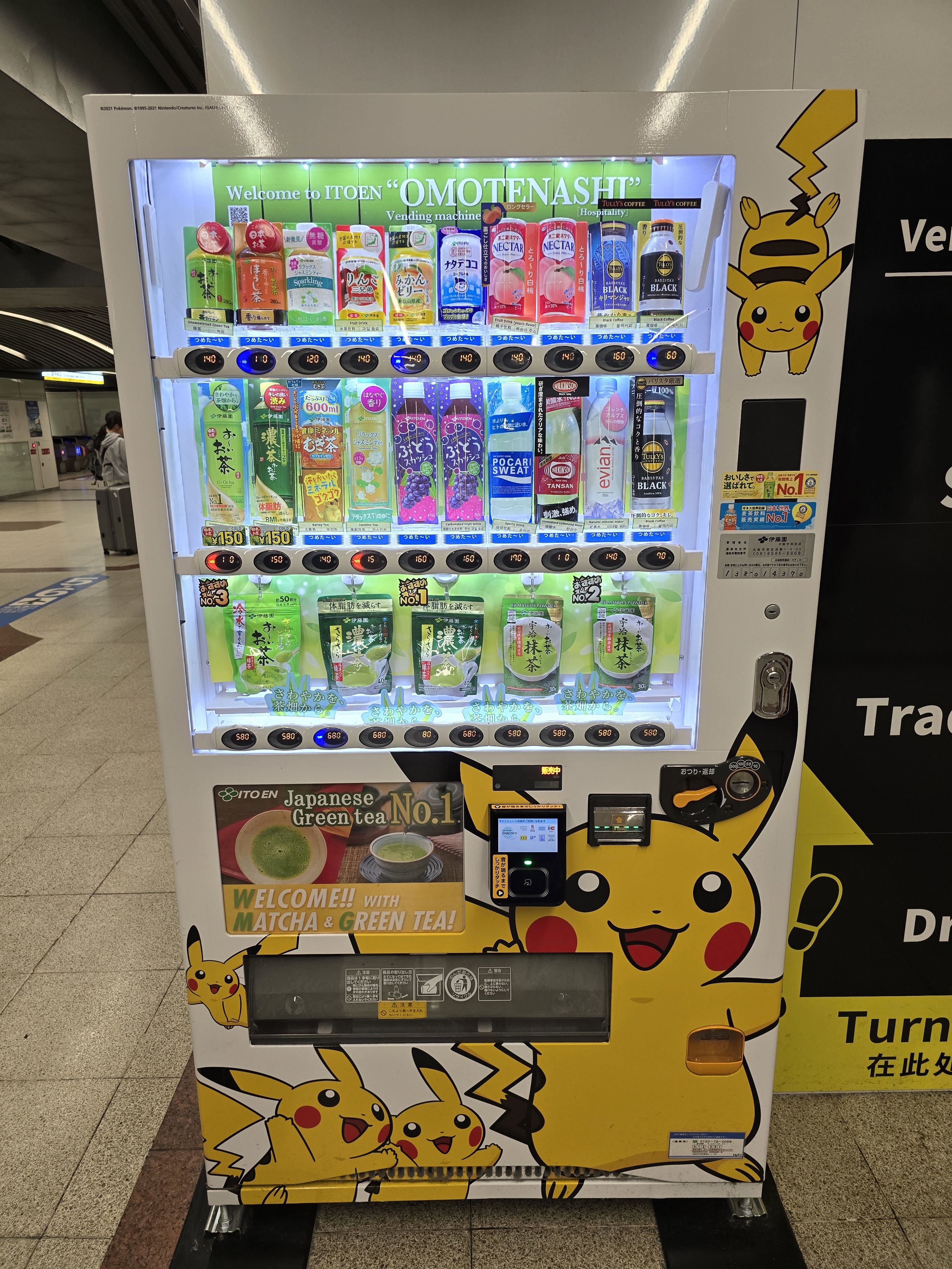 Verdursten wird man in Japan nie, denn sei es an Bahnhöfen oder auch einfach unterwegs entlang der Strasse – überall gibt es Getränkeautomaten, aus welchen man mit wenigen Yen-Stücken Eistee, Kaffee und Co. herauszaubern kann. Wir haben versucht, so viele Getränke wie möglich zu testen, konnten uns aber nicht wirklich durch alle Produkte probieren. Auch Eiscrème, Süssigkeiten und Snacks gibts an einigen Automaten zu kaufen.