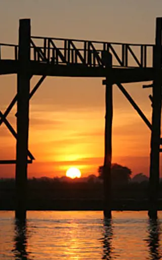 die U Bein Bridge im Sonnenuntergang
