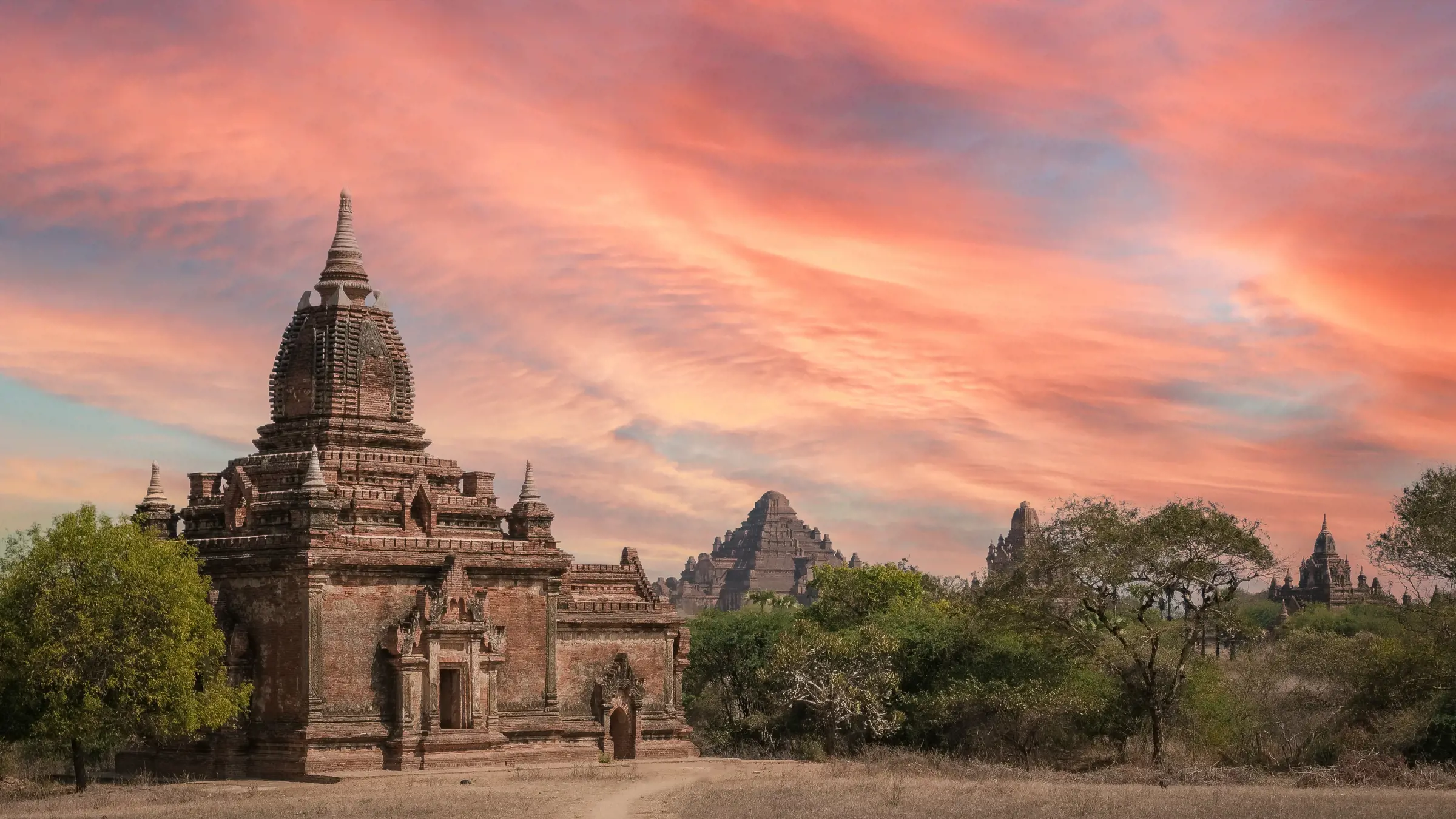 In dieser Stätte stehst du zwischen so vielen Pagoden, Stupas und Tempeln, dass du es auch als einen Pagodenwald betiteln kannst. Denn nach dem Eingang, einem rund 600 Meter langen gedeckten Säulengang, erwarten dich über 1000 Bauwerke. Goldene, aus Stuck oder aber aus Backstein, teilweise inzwischen überwuchert von Sträuchern oder Baumwurzeln. Eine geheimnisvolle Sache!