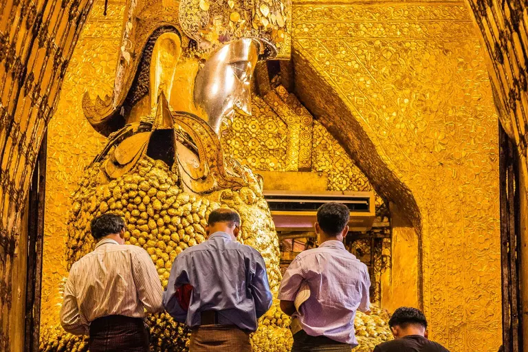 Vor der meistverehrten Buddha-Statue Myanmars