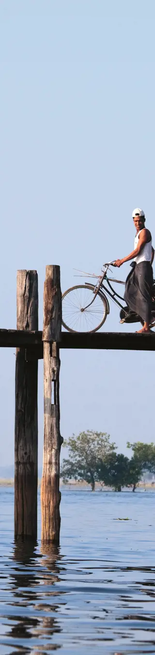 Auf der mit 1.2 km unglaublich langen Teakholz-Brücke über den Taungthaman-See kreuzt du spazierende Mönche, Velofahrer und kichernde Jugendliche. Unter der schmalen Brücke beobachtest du Fischer, die ihre Netze von Hand auswerfen. Unvergessen bleibt der Sonnenuntergang hinter der unverwechselbaren Silhouette der fotogenen Brücke und der in der Landschaft «verstreuten» Pagodendächer.