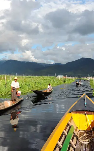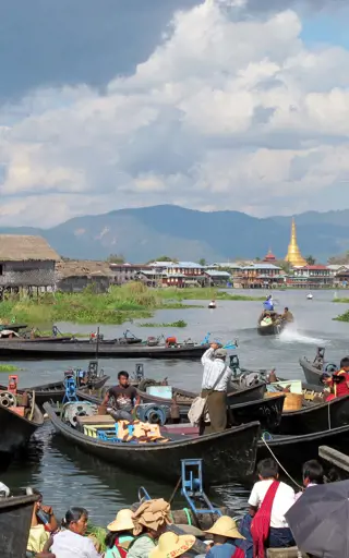 Du fährst vorbei an Dörfern auf Stelzen über dem Wasser, an schwimmenden Tomaten-, Gemüse- und Blumengärten, an Bauernfamilien in ihren Kanus, an den berühmten „Beinruderern“. Und immer wieder siehst du am Ufer eine Pagode in der Sonne glänzen. Vergiss bei einer Bootsfahrt auf dem Inle See also deine Kamera nicht - es gibt Fotomotive, wo du auch hinsiehst.