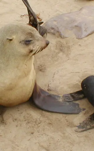 Die felsige Küste ist heute ein Schutzgebiet für Zwergpelzrobben. Abertausende Robben belagern den Strand und veranstalten ein Mordsgezetter. Die Mehrheit der Tiere ist blutjung. Die schwarzen Pelze der Kleinen glänzen, grosse dunkle Kulleraugen blicken uns treuherzig entgegen. Verspielt balgen die putzigen Kerle zusammen und purzeln übereinander.