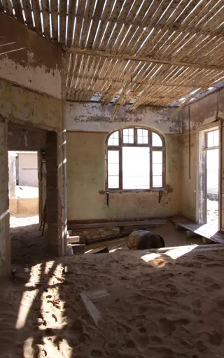 Nur einige Kilometer südöstlich von Lüderitz liegt die Geisterstadt Kolmanskop mitten in der Sandwüste. Im Jahre 1908 wurden hier die reichsten Diamantenvorkommen der Welt entdeckt. Sanddünen wachsen immer weiter in die längst verlassenen Häuser hinein und über sie hinaus. Einige Gebäude sind als Erinnerungsstätten an den Diamantenboom wieder hergerichtet worden.