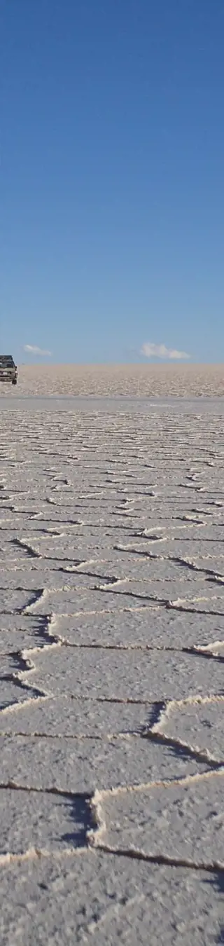 Mit 4×4 Fahrzeugen brichst du auf zur grössten Salzfläche der Erde. Von den Einheimischen wird diese Salzwüste zu recht «Weisses Meer» genannt. Besuch des Eisenbahnmuseums (mit alten Lokomotiven aus dem Jahr 1899 und den Waggons, die einst bolivianische Mineralien zu chilenischen Häfen transportierten und heute Teil der industriellen Vergangenheit sind). Anschliessend fährst du weiter nach Colchani, wo du die Salzproduktion erlebst. Nach einem Mittageseen mitten in der Salzwüste fährst du zur Nordseite des Salzsees (mit Blick auf den beeindruckenden Tunupa-Vulkan) und dem Besuch der Chiquini-Höhle mit ihren faszinierenden geologischen Formationen.