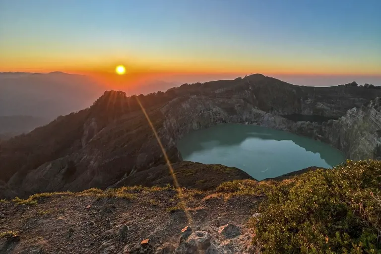 Wenn man früh genug losgeht, kann man von der Spitze des Kelimutu Vulkans eine der spektakulärsten und mystischsten Sonnenaufgänge erleben, der Indonesien zu bieten hat. Zu seinen Füssen hat man die drei Kraterseen, die in verschiedenen Farben erstrahlen und weiter unten die ganze Schönheit der Insel. Man kann langsam dem Tag beim erwachen zuschauen, und sehen wie alles um einen herum langsam in Licht getaucht wird. Ein magischer Moment.
