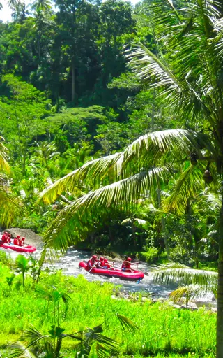 Das River Rafting auf dem längsten Fluss Balis verspricht aufregende Action und jede Menge Spass. Gemeinsam paddelst du mit deiner Gruppe durch wilde Stromschnellen, die sich durch eine dicht bewachsene Dschungel-Schlucht winden. Hier bleibt garantiert niemand von euch trocken. Ein absolutes Highlight für dich, wenn du das Abenteuer und die Natur liebst.