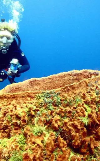 Der Tauchgang führt zu Beginn entlang einer Steilwand, die mit Gorgonien, Schwämmen und Peitschenkorallen bewachsen ist. Falls es Strömung hat, begleiten Stachelmakrelen und Schnapper den Taucher. Ein Plateau auf ca. 40 Meter Tiefe bietet immer wieder Abwechslung, denn zahlreiche Schildkröten und Napoleon-Lippfische tummeln sich hier. Mit nur etwas Glück trifft man auf Grau- oder Weissspitzenhaie und Adlerrochen.