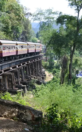 Während dem zweiten Weltkrieg wurde die Eisenbahnlinie zwischen Burma und Thailand von Kriegsgefangenen und Zwangsarbeitern gebaut. Mehr als 100‘000 Personen kamen dabei ums leben. Death Railway, Eisenbahn des Todes, heisst die Strecke seitdem.