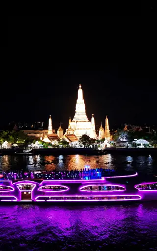 Bangkok mal von einer anderen Seite her sehen und dabei die besten lokalen Köstlichkeiten geniessen. Das bietet eine Dinner-Kreuzfahrt auf der Wasserader Thailands. Die speziellen Boote bieten ein umfangreiches Buffet und bieten einem die Möglichkeit, das bunte treiben der hektischen Stadt und ihre tausenden Lichter vom Fluss Chao Phraya aus zu sehen.