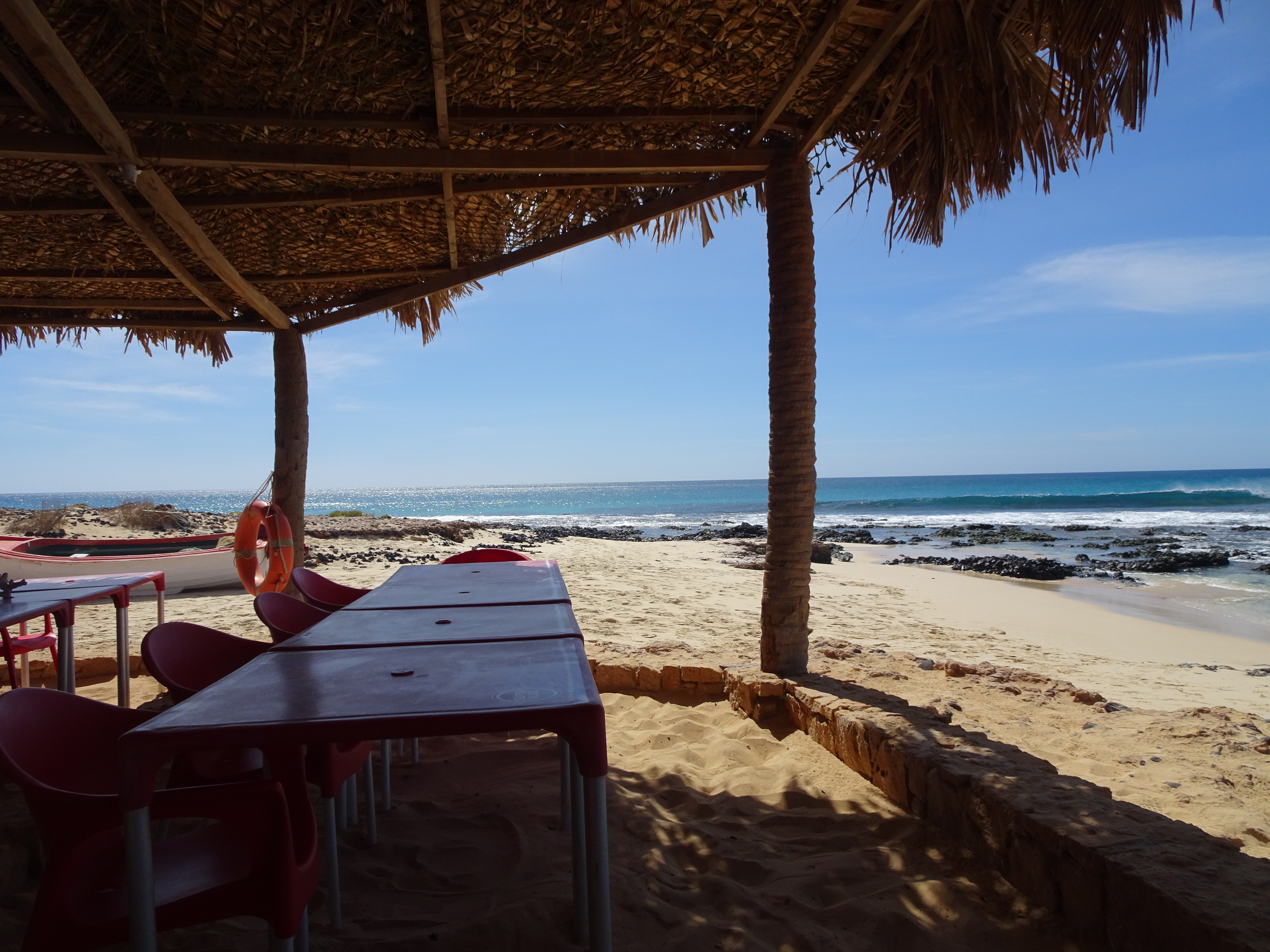 Ob langer, flacher Sandstrand, Dünen oder felsige Küste – einen Tag lang zeigt uns ein Fahrer die Highlights im Süden der Insel. Zur Mittagessenszeit erreichen wir diese Beachbar und sind überrascht, den schönen Ort bei frischem Fisch in kleiner Runde geniessen zu dürfen.