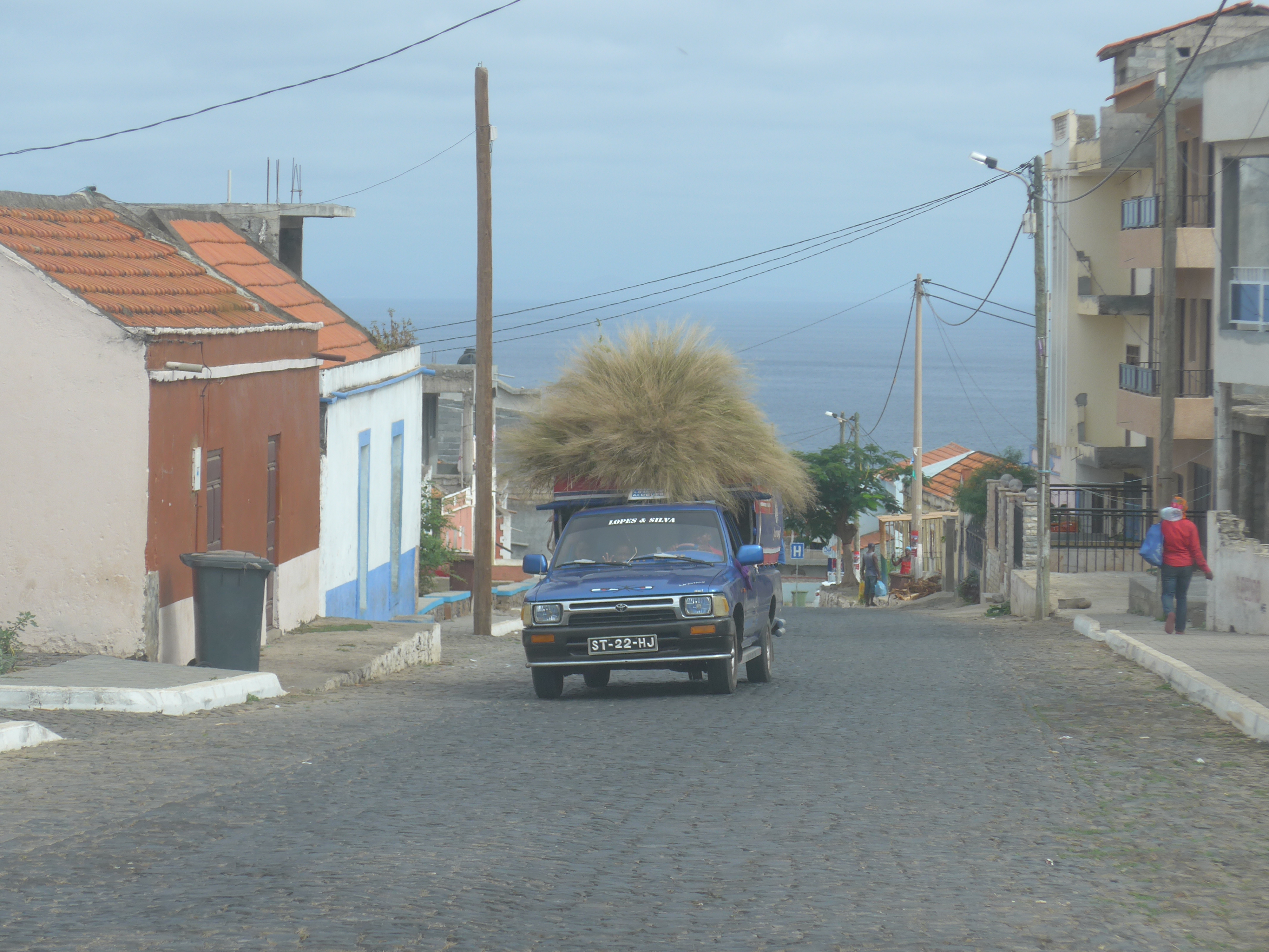 Oft fährt man auf den Inseln in Sammeltaxis, sogenannten «Alugueres» oder «Colectivos», in den nächsten Ort. Auf Santiago wählen wir zur Abwechslung einen Mietwagen und entdecken gemütlich die Insel auf eigene Faust. Dabei staunen wir immer wieder, was alles transportiert wird.