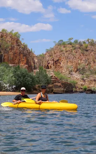 Auf einer Bootstour erkundest du das faszinierende System von 13 Schluchten, die bis zu 70 Meter hohe Sandsteinfelsen umfassen – die berühmte Katherine Gorge, die ganze zwölf Kilometer lang ist. Zusätzlich zu dieser Erfahrung empfehlen wir dir Wanderungen, zum Beispiel zu den Edith Falls. Als Belohnung erwartet dich ein erfrischendes Bad in einem malerischen natürlichen Pool mit kristallklarem, kühlem Wasser.