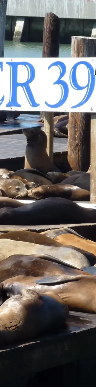 Die Pier 39 ist der wahre Mittelpunkt von Fisherman’s Wharf. Dort wohnen seit 1990 zahlreiche Seelöwen, für die direkt in der unmittelbaren Nähe des Pier schwimmende Stege und Sonnenterrassen gebaut wurden. Hier sonnen sich oft bis zu vierhundert von ihnen und bieten den Reisenden ein grossartiges Fotomotiv.