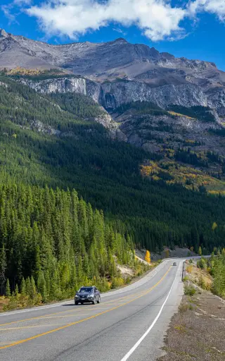Lass auf der Fahrt auf dem Icefields Parkway weite Täler, dichte Wälder, zahlreiche uralte Gletscher, türkisfarbige Seen und Wasserfälle an dir vorbeiziehen. Und rechne genug Zeit ein, denn die unglaublich schöne Landschaft verleitet immer wieder zum Anhalten und Staunen.