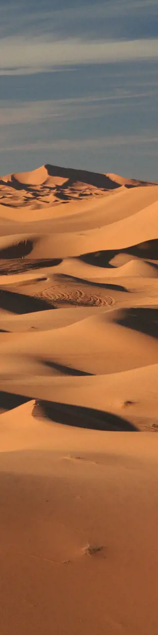 Mit dem Jeep kannst du durch die Erg Chigaga Wüste fahren, in der eine atemberaubende Landschaft mit unzähligen Sanddünen auf dich wartet. Mache dich auf die Spuren der Nomaden, fahre mit dem Velo durch eine Palmenoase oder schlafe in einem Zeltdach mitten unter dem klaren Sternenhimmel der Wüste – ein unvergessliches Erlebnis!