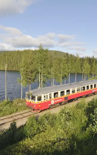 Schnapp dir einen Fensterplatz! Die Inlandsbahn fährt von Juni bis August die 1'300 km von Mittelschweden bis nach Lappland. Während der Zug nach Norden rollt, wird die Landschaft immer wilder. Die Zivilisation verschwindet langsam und lässt der Natur ihren Platz.
