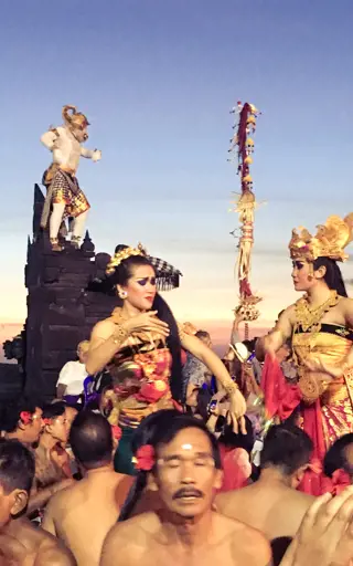 Aufgrund seiner Lage etwa 100 Meter über dem Meer an einer Steilküste erscheint der Uluwatu-Tempel wie eine abgeschiedene Oase. Obwohl viele Reisende diesen Ort aufsuchen, bietet er dennoch die Möglichkeit, die lokale Bevölkerung kennenzulernen und möglicherweise an einem Tempelfest teilzunehmen.