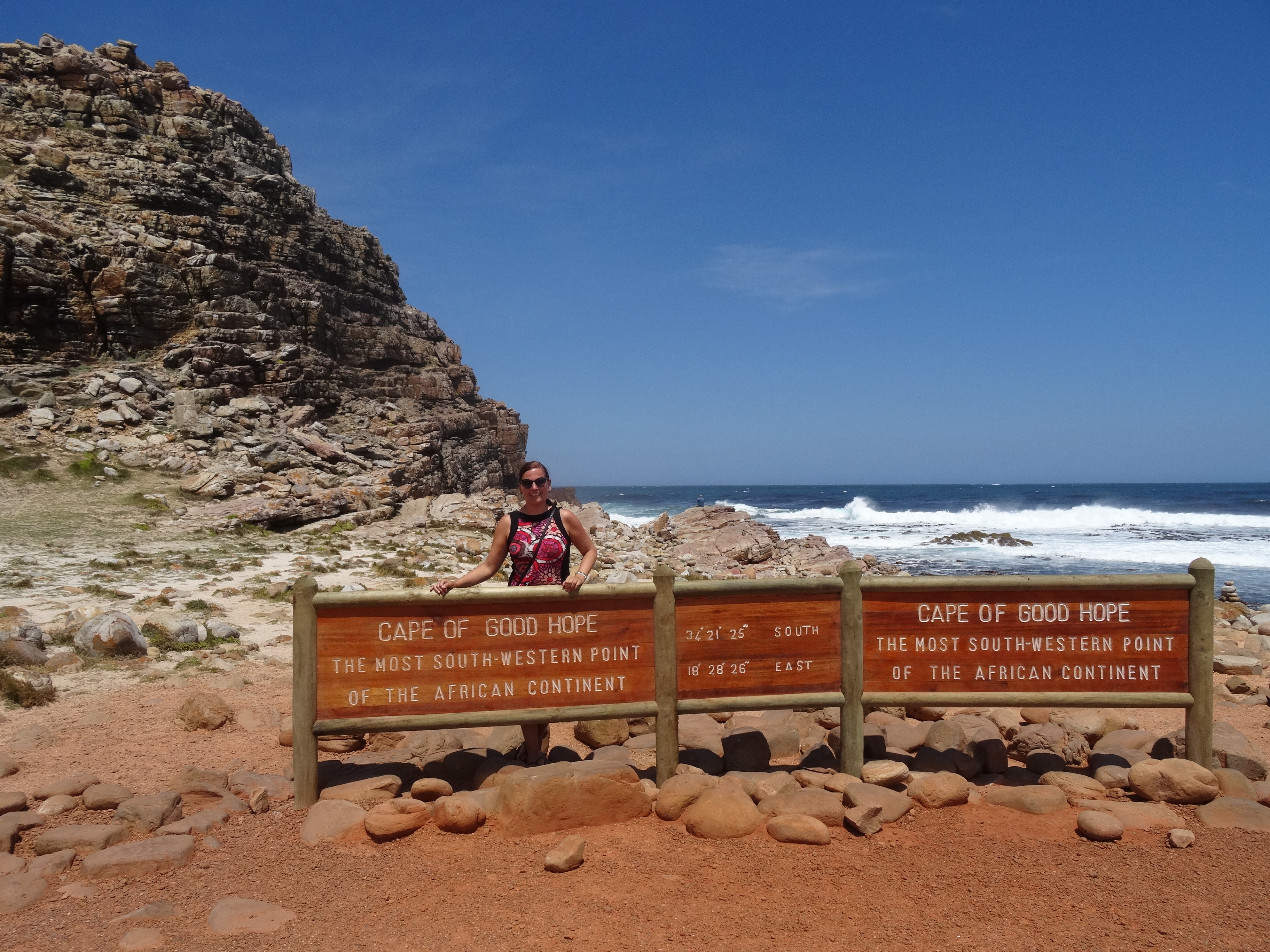 Jeder der in Südafrika ist, möchte einmal zu diesem magischen Ort, dem "Kap der Guten Hoffnung". Cape Point ist eine ca. 250 Meter hohe Klippe mit Leuchtturm, der den südwestlilchsten Zipfel Afrikas darstellt. Es liegt inmitten des Naturreservat Cape Peninsula National Park, das die Heimat von einer Vielzahl von Wildtieren ist. Ungefähr einen Kilometer entfernt liegt das Kap der guten Hoffnung, wo wirklich jeder Tourist das Erinnerungsfoto mit dem berühmten Schild schiesst – wie man sieht auch ich. Nicht verpassen: die Fahrt über den Chapman’s Peak Drive.
