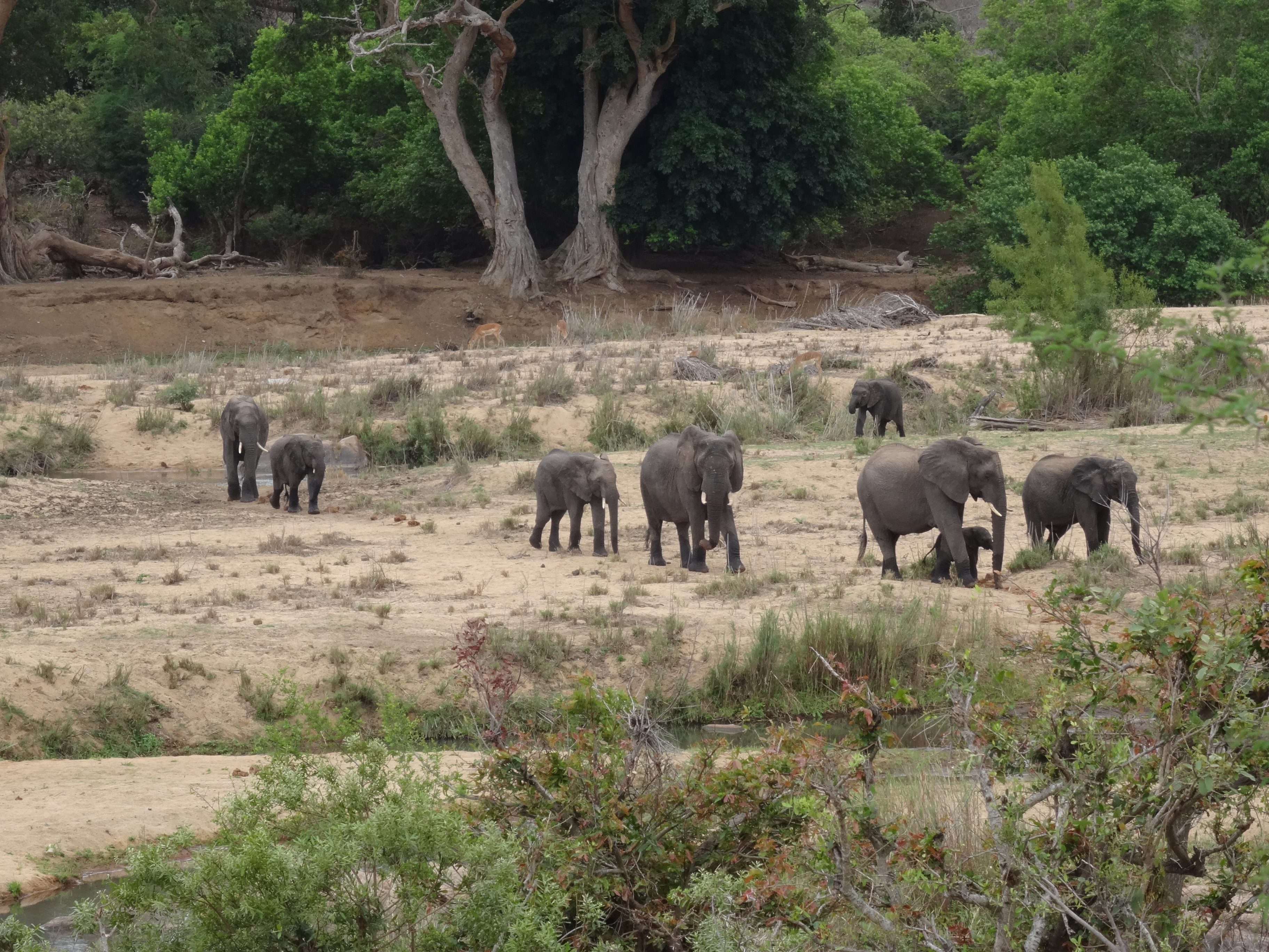 Auf einem ganztägigen Game Drive (Safari im offenen Jeep), auf den Spuren der Big Five im südlichen Krüger-Nationalpark, sahen wir bei perfekten Wetterbedingungen unzählige wilde Tiere: Giraffen, Löwen, Wasserbüffel, Nashörner, Zebras, Affen, Elefanten, Nilpferde, Hyänen, Wildschweine, Antilopen etc.
