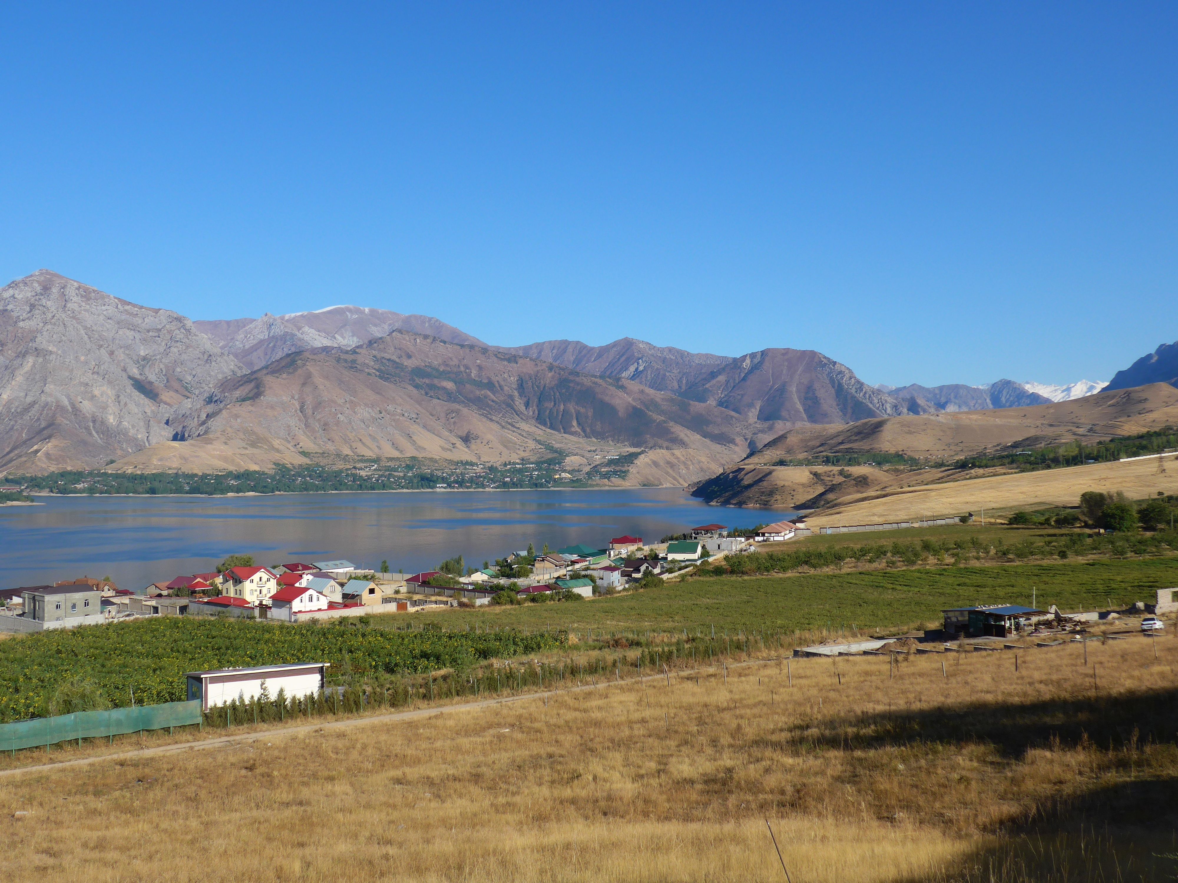 Etwa eineinhalb Stunden östlich von Taschkent liegt das grosse Wasserreservoir der Region. Der See ist von den Ausläufern des Tien Shan Himmelsgebirges umrahmt und wird von drei Zuflüssen aus den Bergen gespiesen. Während auf der Südseite einige Hotels das Ufer säumen, finden wir auf der Nordseite kleine ländliche Dörfer und kreuzen Hirten mit ihren Schafherden.