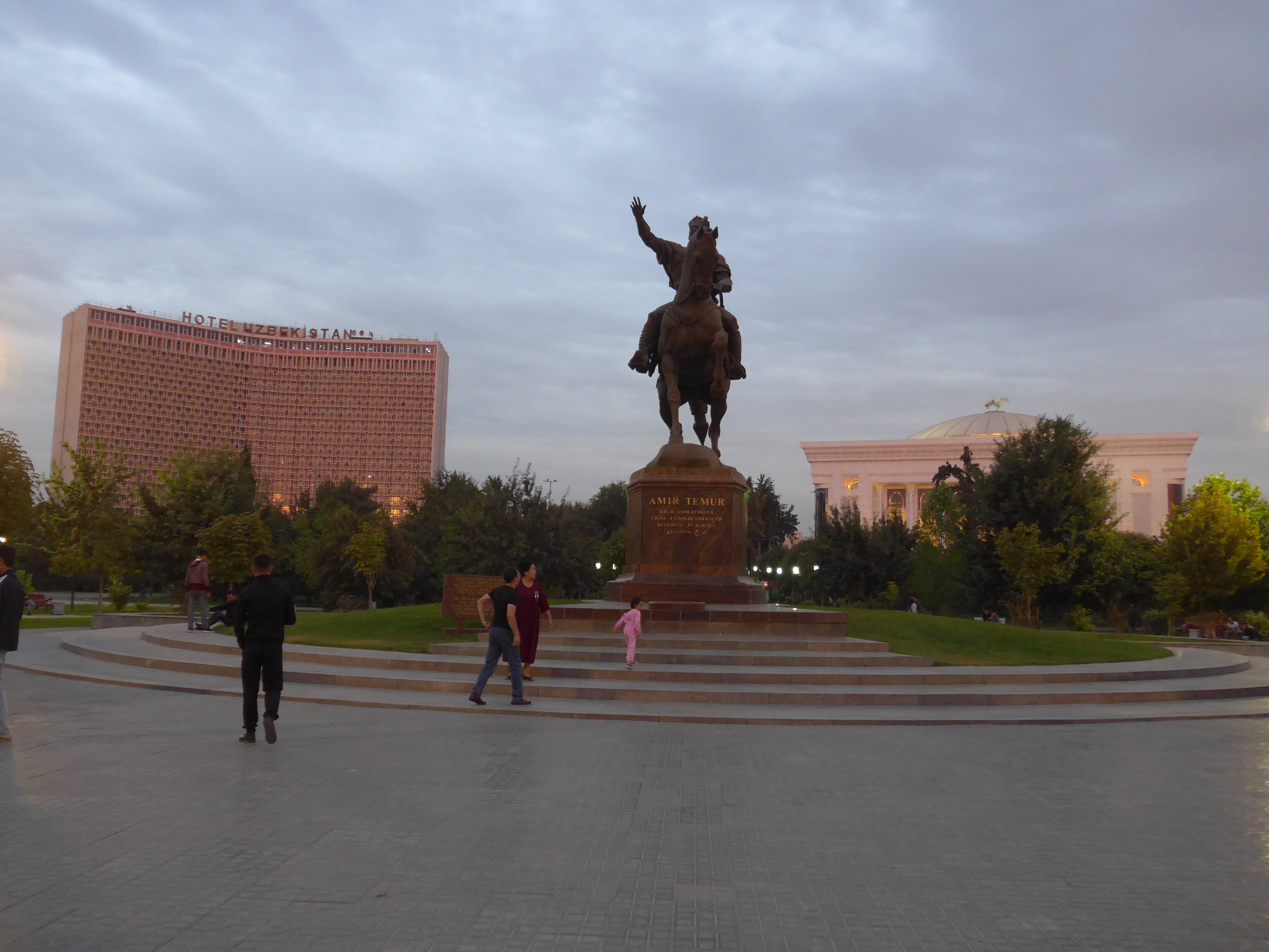 Hoch zu Ross auf dem nach ihm benannten Platz wacht der usbekische Nationalheld über den ehemaligen russischen Stadtteil der Hauptstadt. Wie auch wir kommt so mancher Tourist hier vorbei. Diese Tatsache nutzen die jungen Einheimischen, um ihr Englisch anzuwenden und fragen uns ganz schüchtern, ob wir mit ihnen ein Foto machen würden. Ein sympathischer Start!