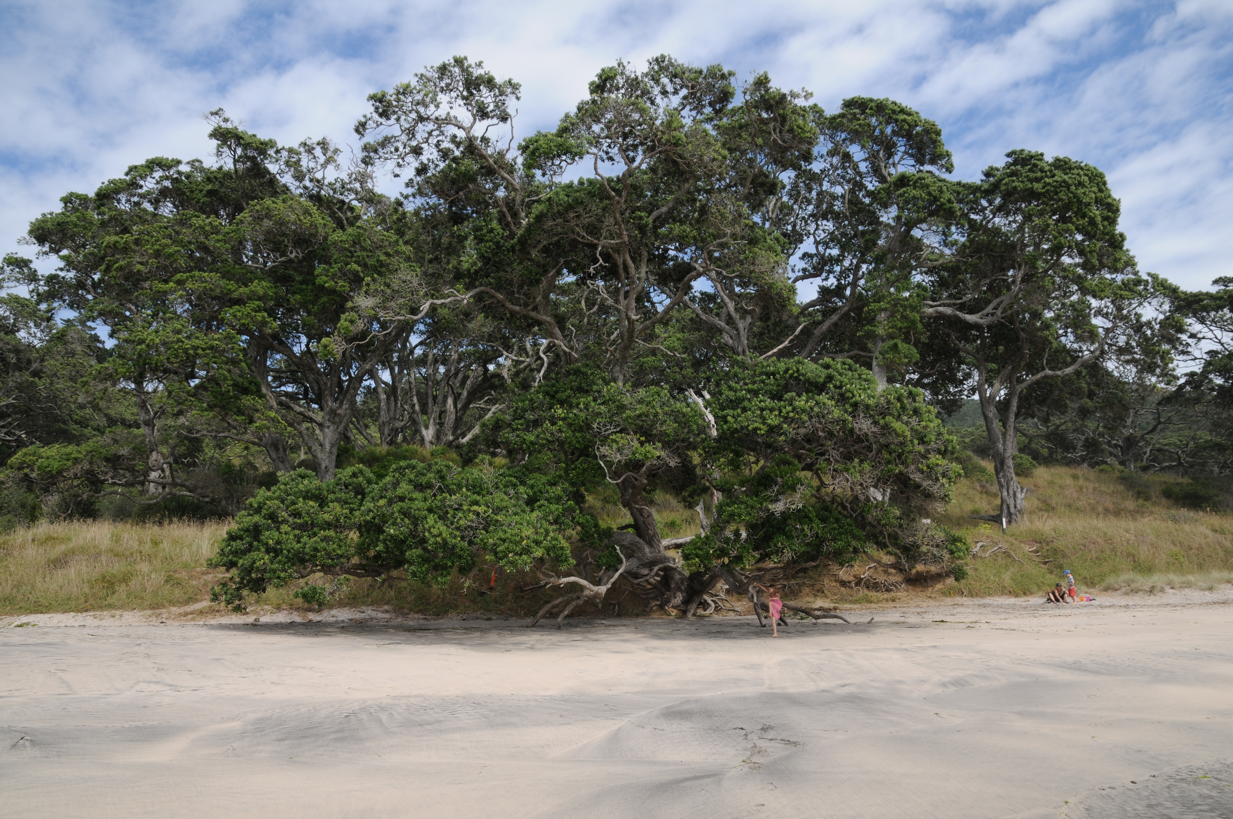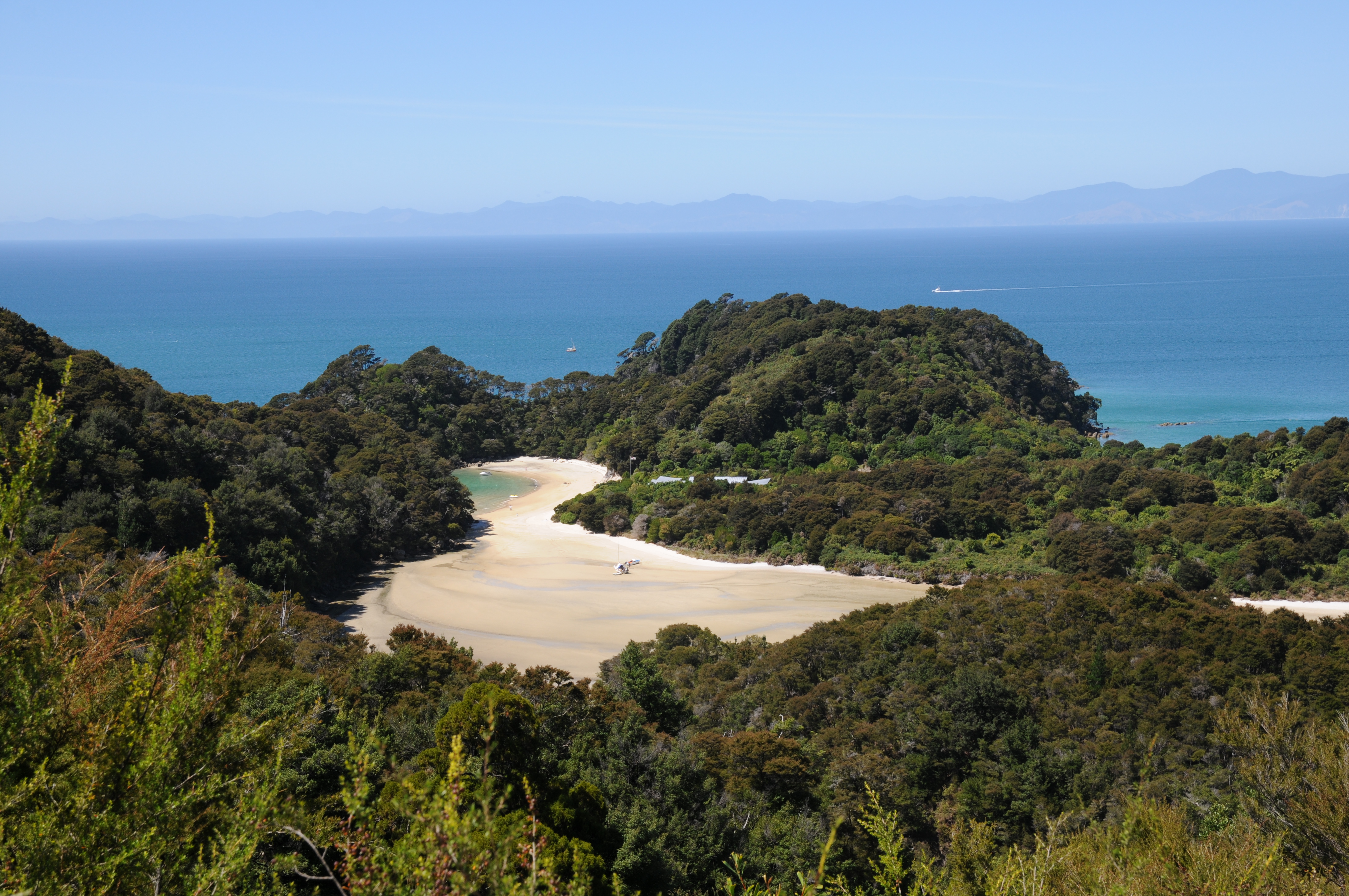 Der Blick, aus dem Wald, über die bei Ebbe breiten Strände, zwischen dem üppigen grün, der reichhaltigen Flora, über das funkelnde Meer in Richtung Nordinsel ist einfach atemberaubend! Das ist Neuseeland!