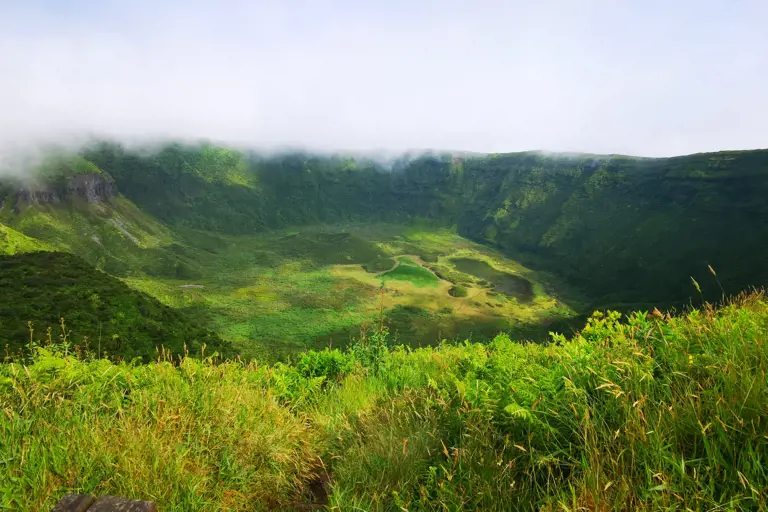 Die kesselförmige Struktur vulkanischen Urpsrungs gehört zu den schönsten und beliebtesten Ausflugszielen auf den Azoren. Highlight ist der Vulkansee, der durch seine wunderbaren Farben besticht. Vom Rande des Vulkankraters schimmert das Wasser des grösseren Lagoa Azul in tiefem Blau, während das Wasser des kleineren Lagoa Verde durch Lichtreflexionen des umliegenden Nadelwaldes grünlich glitzert.