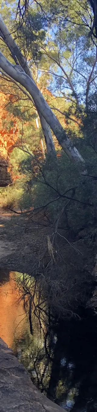 Auf halber Strecke zwischen Alice Springs und dem Uluru erlebst du eine faszinierende Schluchtwanderung. Auf anspruchsvollen Pfaden erkundest du die bis zu 100 Meter hohen, roten Felswände, die einen atemberaubenden Ausblick bieten. Der Canyon Rim Walk führt dich zudem zu einem Teich, an dem du in den Morgen- und Abendstunden Tiere beim Trinken beobachten kannst.