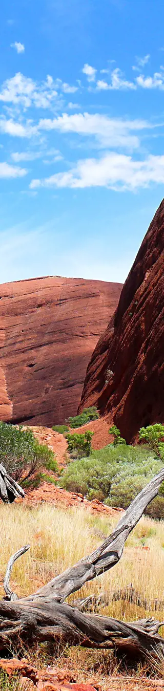 In der Sprache der Einheimischen bedeutet Kata Tjuta so viel wie «viele Köpfe». Es bezieht sich auf die 30 markanten kuppelförmigen Felsformationen der Olgas, die du auf verschiedenen Wanderungen erkunden kannst. Besonders beeindruckend präsentieren sie sich während des Sonnenauf- oder -untergangs.