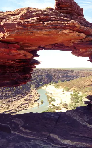 Vielleicht hast du bereits vom «Natural Window» gehört, doch das ist nur eine der vielen Attraktionen in diesem Naturschutzgebiet, das von bis zu 100 Meter tiefen Schluchten entlang des Murchison River geprägt ist. Bei Wanderungen in der Morgen- oder Abenddämmerung kannst du die rot-weiss gestreiften Felsen besonders farbenprächtig erleben. Im Frühling und Sommer verstärkt sich diese Pracht durch die hier so typischen Wildblumen.