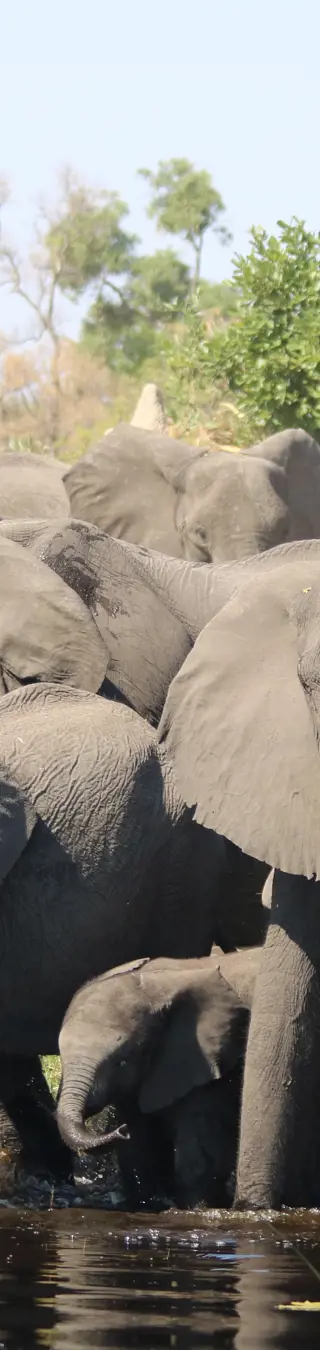Im Chobe-Nationalpark, dem grössten Elefanten-Refugium der Welt, leben mehr als 60 000 graue Riesen! Während einer Bootsfahrt gleiten die Boote nah am Ufer entlang, von wo aus du die Tiere vom Fluss aus bewundern kannst.