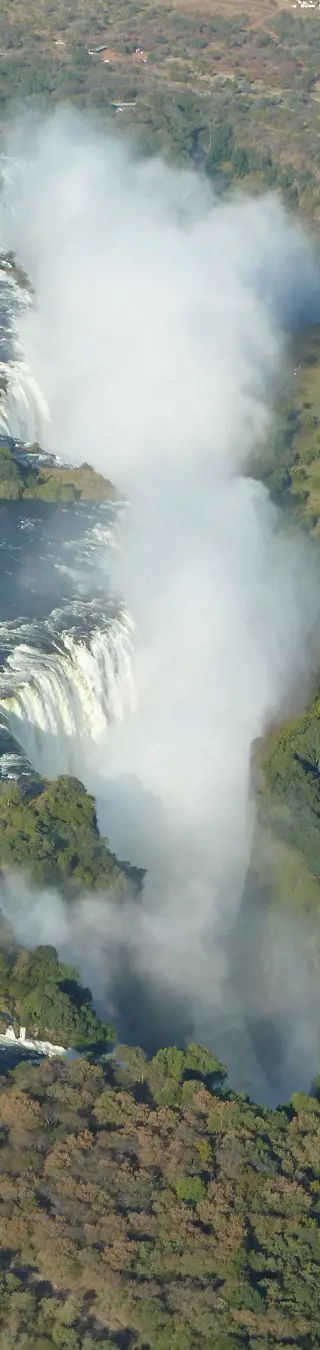 Die imposanten Viktoriafälle gehören zu den Sieben Weltwundern und bilden die natürliche Grenze zwischen Simbabwe und Sambia. Bereits etliche Kilometer entfernt kann man die Gischt der Fluten aufsteigen sehen - der Sambesi stürzt auf einer Breite von zwei Kilometern über 100 Meter in die Tiefe. Das beste dabei: man kann aus nächster Nähe dabei sein; sei dies per Boot, Rafting, Helikopter oder gemütlich von einer der zahlreichen Aussichtsplattformen aus.