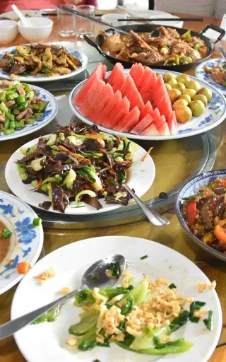 Zu Fuss geht es am Morgen zum Markt in Yangshuo. Du kaufst die Zutaten für dein Mittagessen ein. Während dem Kochkurs lernst du, wie die landestypischen Speisen zubereitet werden und erfährst sicherlich das eine oder andere Geheimnis der chinesischen Küche. Nach dem gemeinsamen Essen geht es wieder zu Fuss zurück zu deiner Unterkunft in Yangshuo.