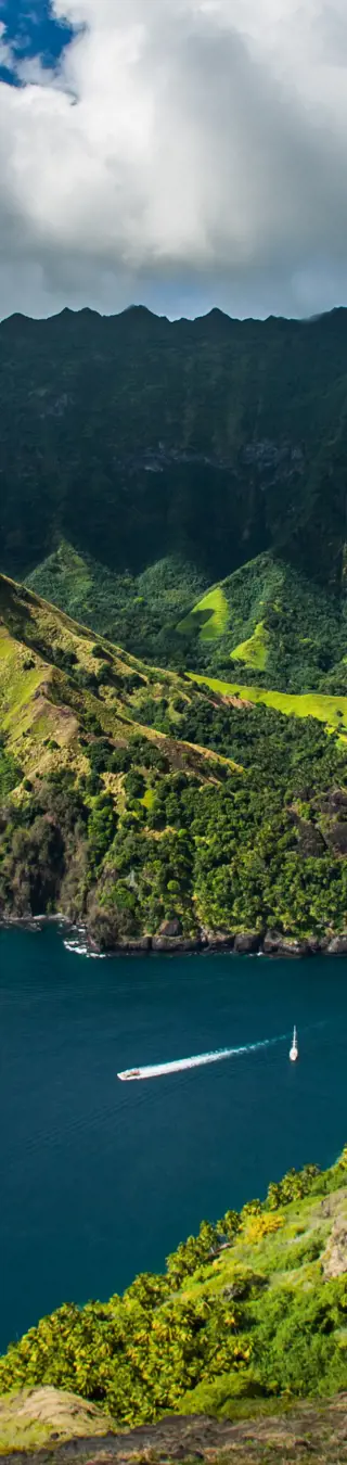Fatu Hiva ist die grünste und entlegenste Insel des Archipels. Zugleich findet sich hier in Omoa das Zentrum der vielseitigen marquesanischen Kunst. Am Nachmittag ankert das Schiff in der «Bucht der Jungfrauen», eine der schönsten Buchten der Welt. Sportliche Passagiere können von Omoa zur Bucht wandern. Auf dem gut 15 Kilometer langen Weg geniesst du atemberaubende Ausblicke von hohen Klippen und majestätische Wasserfälle. Der Sonnenuntergang in der Bucht von Hanavave ist dann ein Moment vollkommenen Glücks.