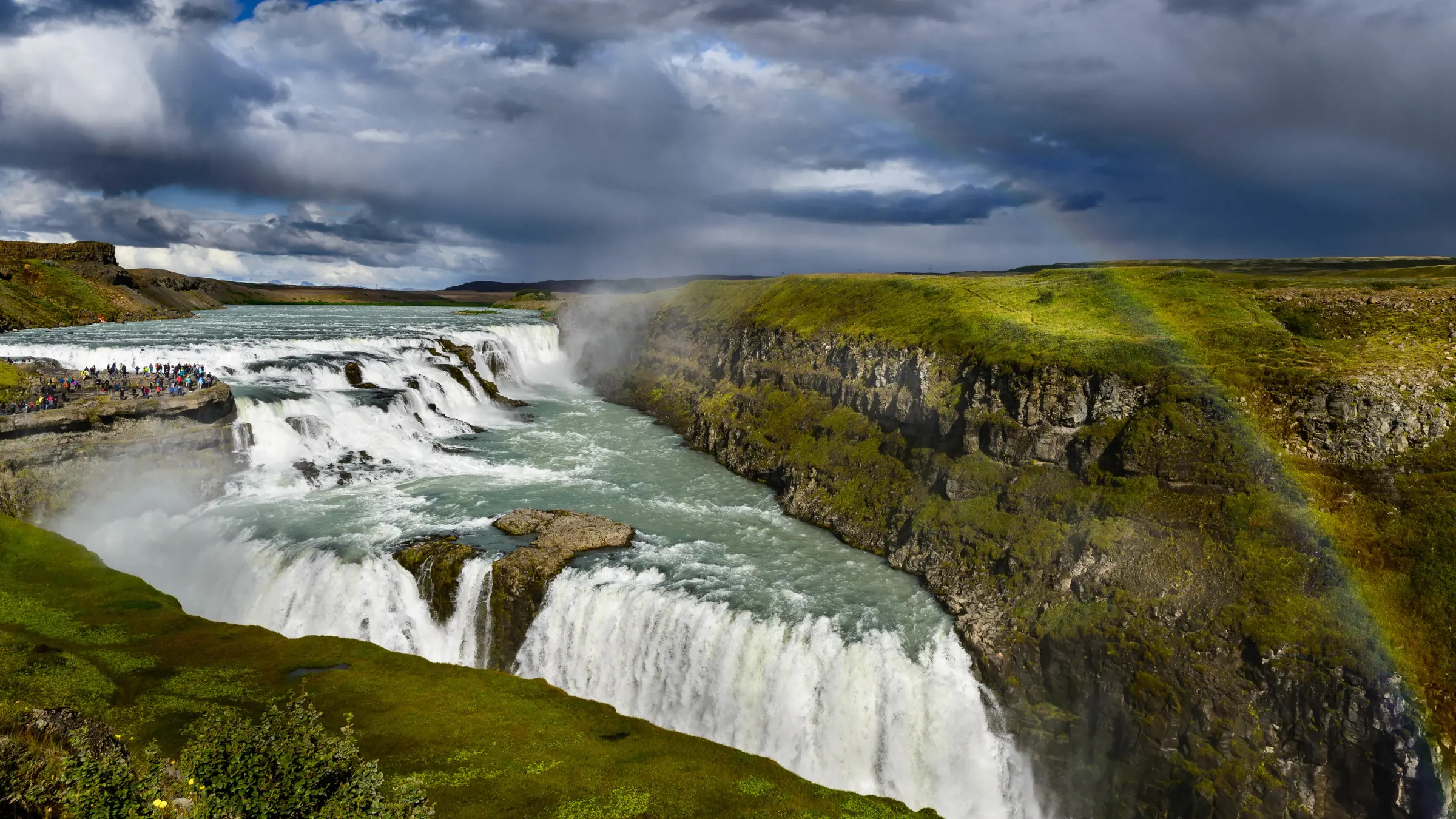 Vorbei an den Wasserfällen Skógafoss und Seljalandsfoss, bis zum Gebiet rund um den Geysir.