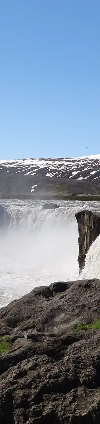Godafoss wird oft als Wasserfall der Götter bezeichnet. Er ist einer von Islands wahren Schätzen und einer der größten Wasserfälle der Insel. Er fließt über 30 Meter breite, hufeisenförmige Klippen und wird in der Mitte durch Felsen geteilt. Ein Teil ist etwa 9 Meter und der zweite 17 Meter hoch. Ein magischer Ort.