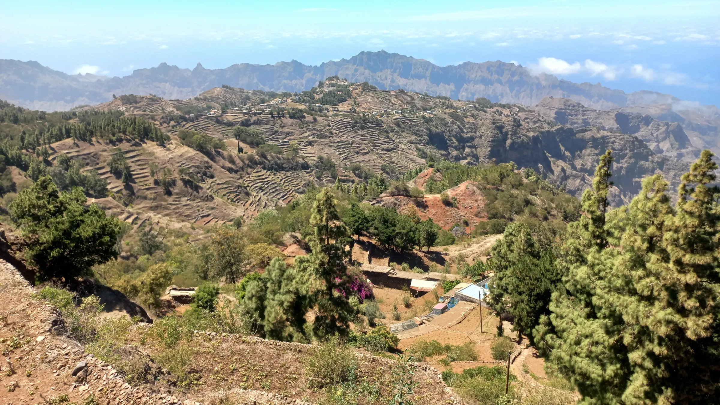 Wir machen uns auf den Weg ins Landesinnere von Santiago und starten unsere Wanderung im Serra Malagueta-Nationalpark. Dieser Nationalpark ist ein Naturparadies! An klaren Tagen können wir am Horizont die Silhouetten der Nachbarinseln Maio und Fogo erkennen. In den Wäldern sind Pinien, Zypressen und Eukalyptus zu bewundern.