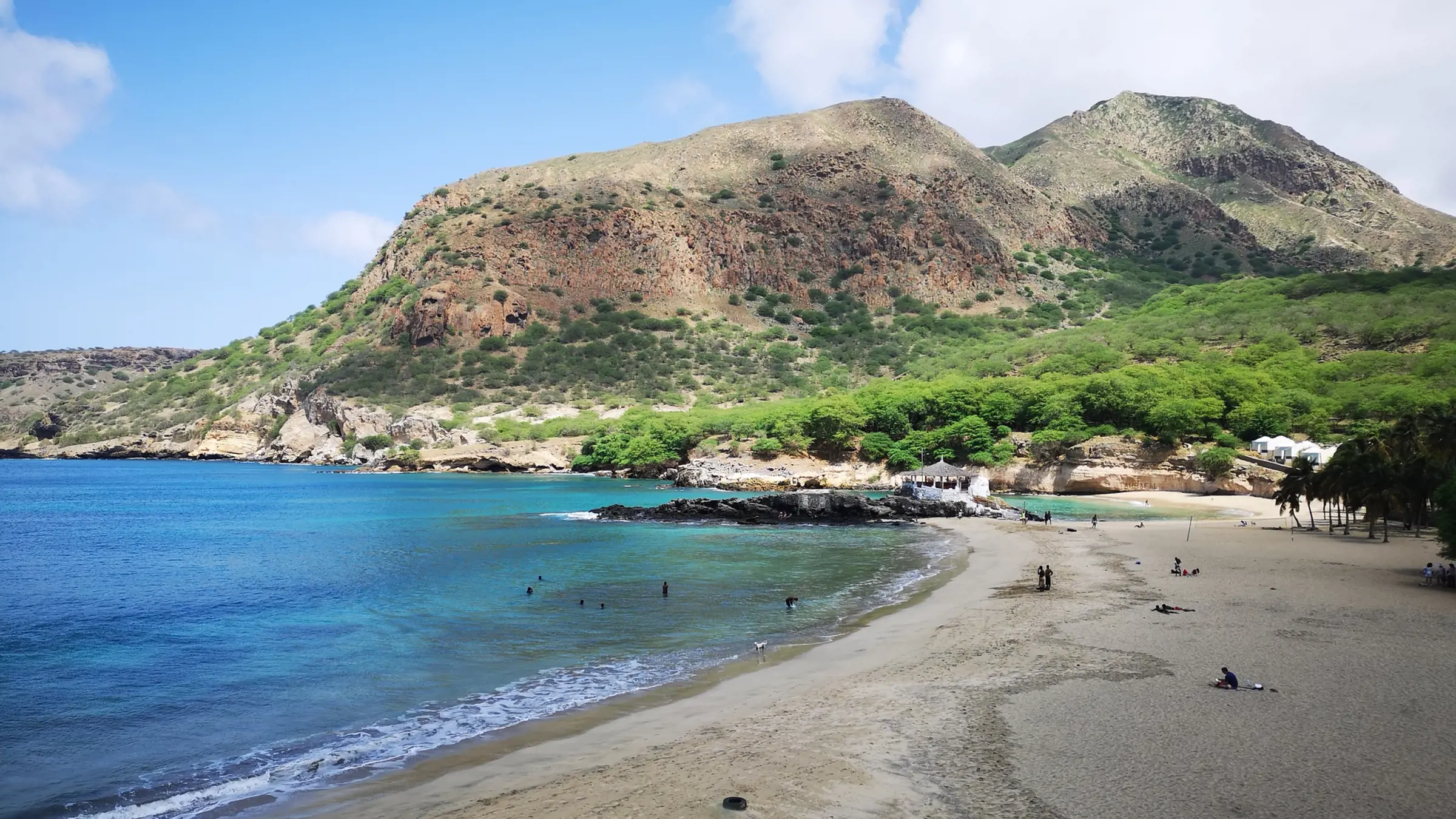 Kurze Fahrt zum Startpunkt der heutigen Küstenwanderung. Wir beginnen die Wanderung in einem Wohnviertel ausserhalb von Mindelo. Der Weg führt uns über die archaischen Berge hinunter zum ersten Strand Joao d'Evora. Von hier aus geht es kurz steil hoch, wo wir mit einem Blick über die Küste belohnt werden. Der Kontrast zwischen den Bergen und dem blauen Ozean ist atemberaubend. Der Küstenweg schlängelt sich bis ins Fischerdorf Salamansa, wo wir etwas Leckeres zu Mittag essen. Anschliessender Besuch von Baia das Gatas, die uns weitere Bademöglichkeiten bietet. Rückfahrt nach Mindelo und Abendessen in der Stadt oder in der Unterkunft.