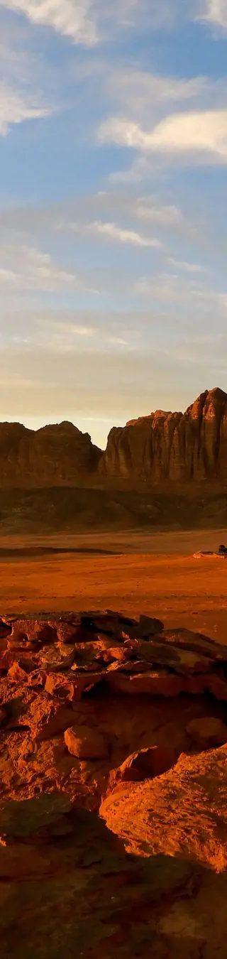Nach dem Frühstück begeben wir uns auf den den Wüsten-Highway ins Wadi Rum. Hier werden wir von unseren Beduinen-Freunden empfangen und fahren mit Jeeps in die Wüste. Wir besuchen die eindrücklichen Felsformationen und geniessen die spektakuläre Landschaft. Der krönende Abschluss des Tages ist das Sternenzelt über unseren Köpfen.