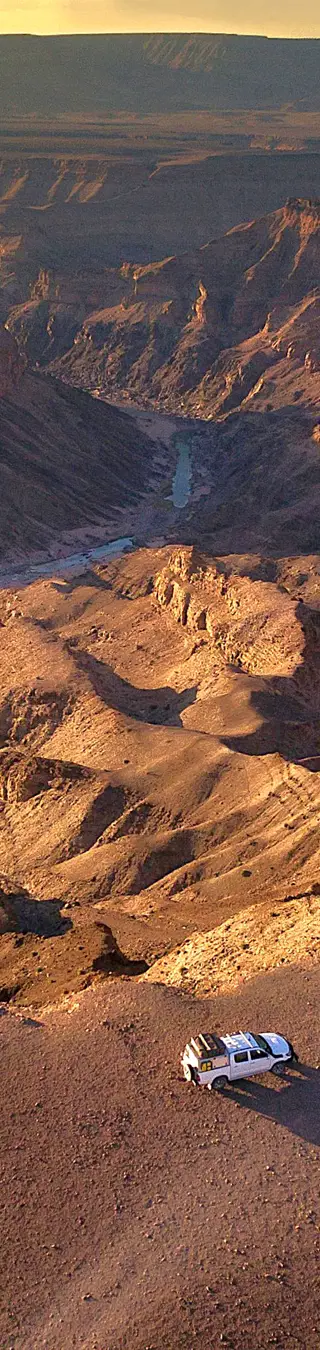 Nutze die Gelegenheit, ausserhalb der Regenzeit den zweitgrössten Canyon der Erde zu erwandern. Der gewaltige Fish River Canyon mit seinen 160 km Länge, bis 550 m Tiefe und bis 27 km Breite wird dich in Staunen versetzen. Das Tüpfli auf dem i ist die herrliche Stimmung, wenn die Sonne hinter der Canyon-Kante untergeht…